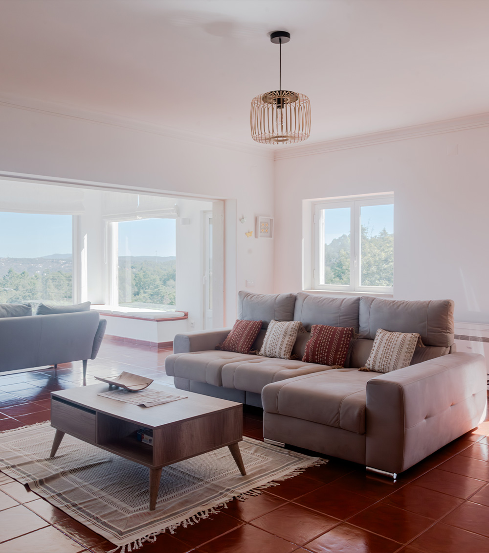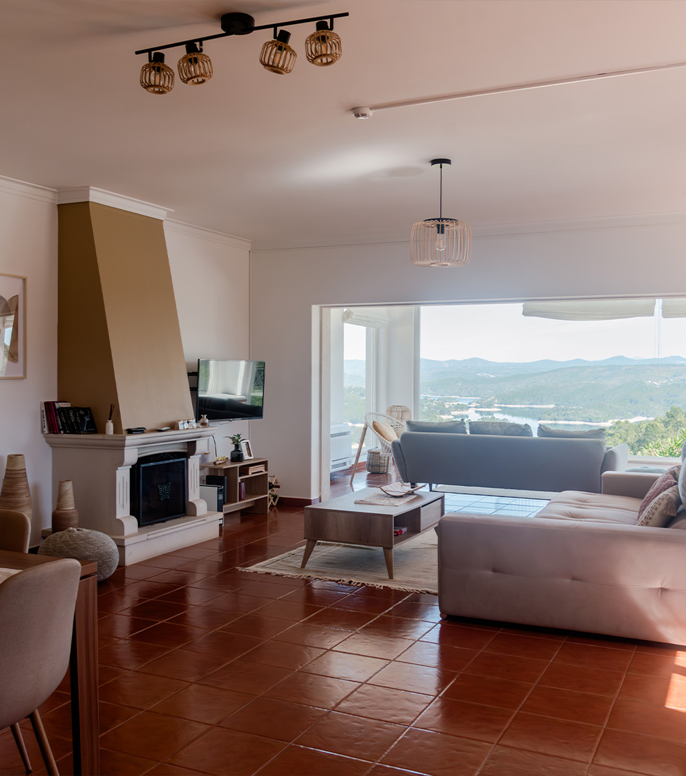 Na Casa da Serra, a beleza revela-se em cada detalhe – na decoração acolhedora que o faz sentir em casa, na piscina que convida a mergulhos prolongados ou na vista deslumbrante sobre o Zêzere que entra pelo janelão panorâmico da sala.